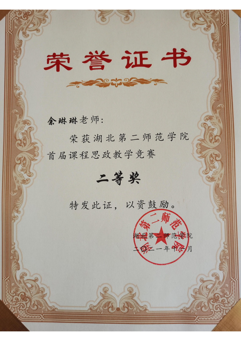校级课程思政比赛二等奖-余琳琳
